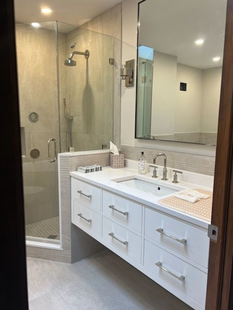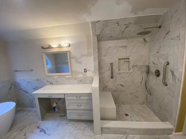 Browse the photo gallery below to see examples of some of the bathroom work we've done at Abruzzi Design Studio! From a traditional look to something more modern, we can bring your vision to life. Contact us today or fill out our online form to request a call back to discuss your bathroom project! We are Home Improvement Certified.